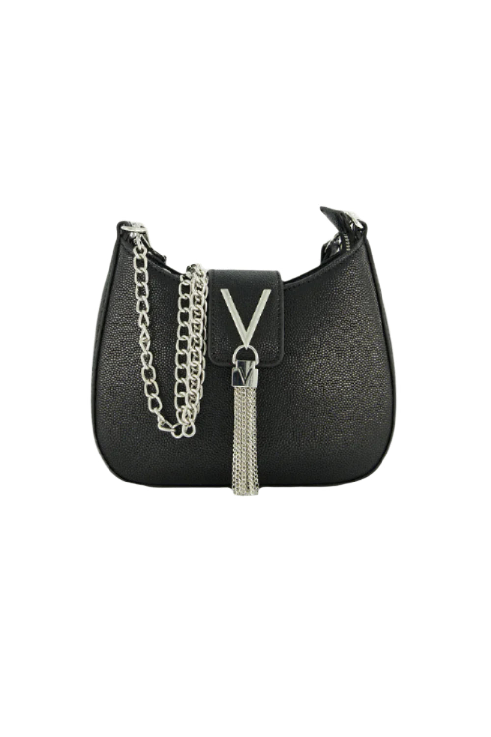 The Women's Valentino Bags Burgundy Divina Small Purse features stunning silver coloured hardware and a convenient zip around design, making it the perfect accessory for any woman on the go. Stay organized and stylish with this must-have purse.