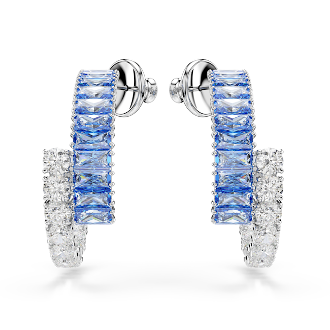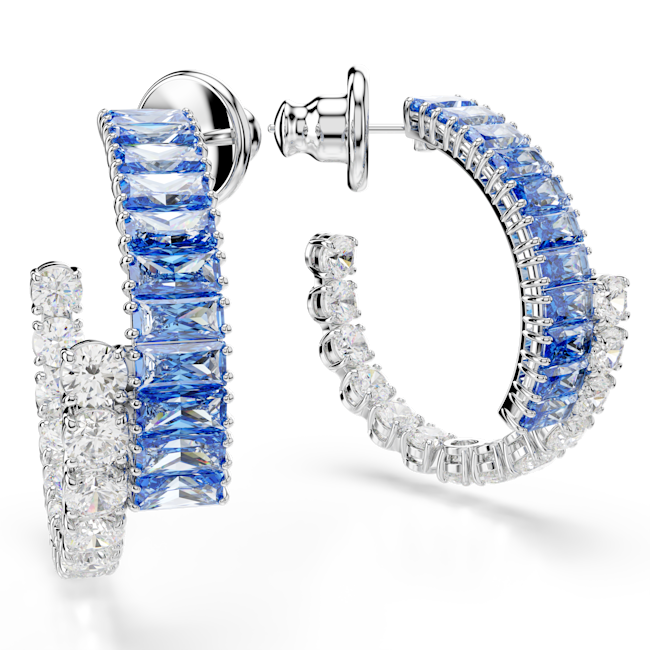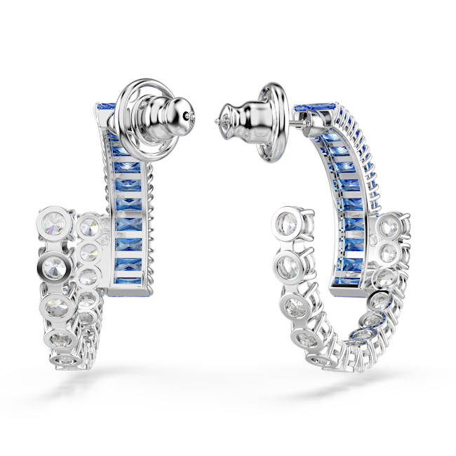 Swarovski Matrix Hoop Earrings Blue Mixed Cuts Rhodium by Swarovski elevate your elegance with radiant blue crystals, designed for standout evening looks.