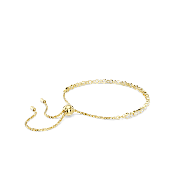 Elevate your elegance with this bracelet featuring dazzling round-cut white crystals set in a refined gold-tone plating that catches the light from every angle.