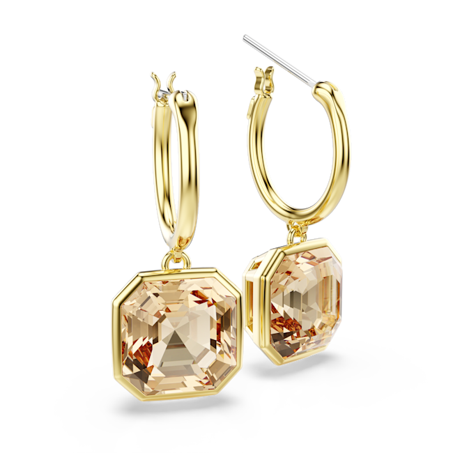 Swarovski Millenia Drop Earrings Square Cut, Caramel, Gold-tone plated
