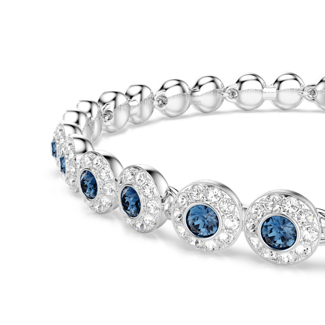 Swarovski Una Angelic Tennis Bracelet Blue Rhodium Plated by Swarovski, showcasing radiant blue crystals set in a rhodium-plated bracelet to elevate your look for refined evenings and special occasions.