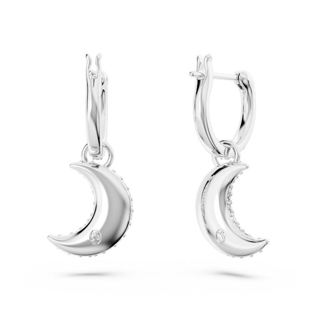 Swarovski Luna Moon Hoop Drop Earrings Rhodium Plated by Swarovski, delivering enduring shine and tarnish-resistant durability for refined everyday wear.