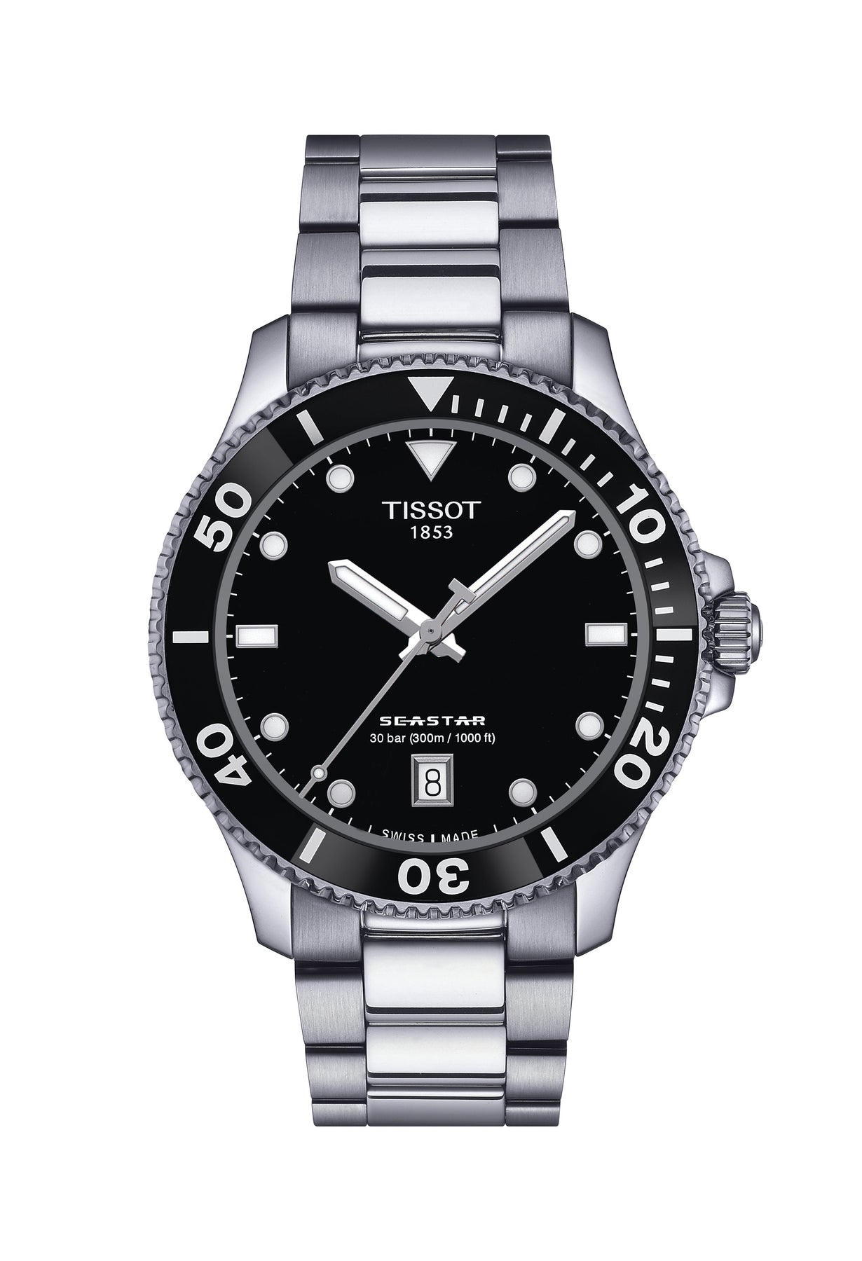 Tissot Seastar 1000 40mm Black Stainless Bracelet Watch by Tissot, delivers robust durability and a sophisticated, dress-ready look for dress occasions.