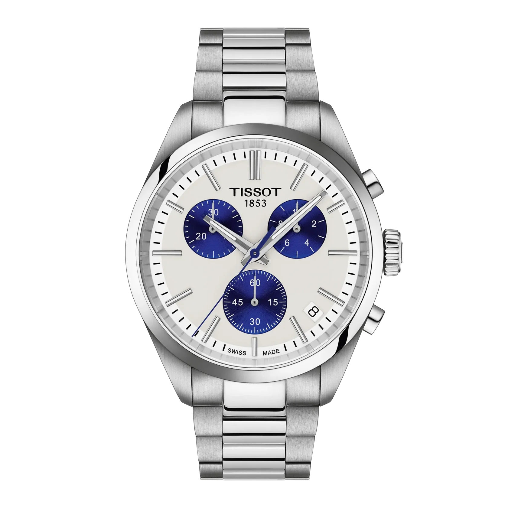 Tissot Mens PR100 40mm White/Blue Chronograph Dial Bracelet Watch T1504171101100