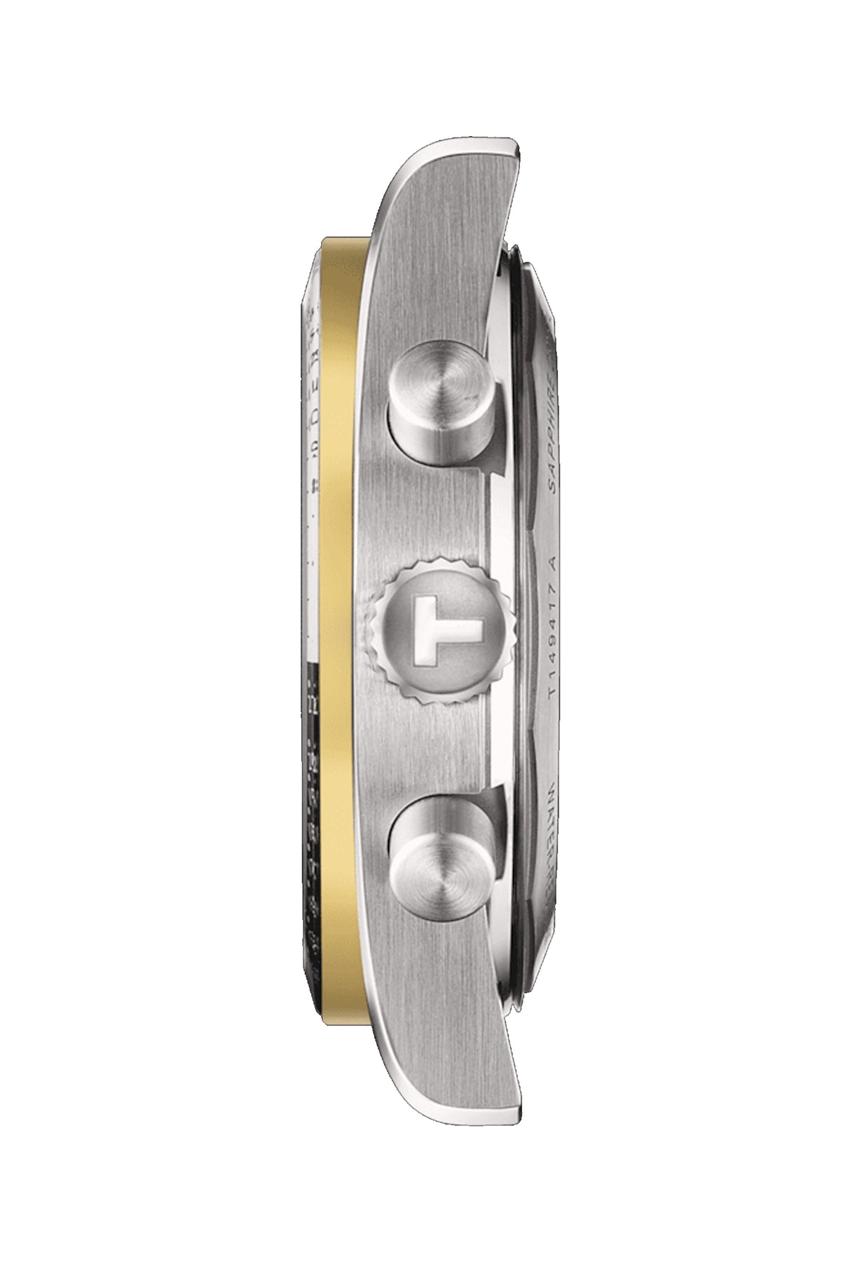 The PR516 Chronograph takes its design cues from Tissot’s 1970s racing heritage — clean lines, bold contrast and a case shape inspired by the era of mechanical sports timing. The black dial keeps things sharp and legible, with gold PVD accents across the case and bracelet adding warmth and a premium edge.