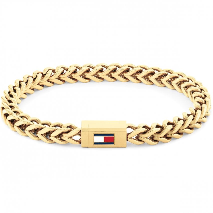 Elevate your everyday style with this Tommy Hilfiger gold plated braided bracelet. The intricate braided design adds texture and visual interest, while the warm gold plating delivers a polished, refined finish. Perfect for layering or wearing solo, this versatile piece transitions seamlessly from day to evening. A timeless accessory that complements any wardrobe with understated elegance and enduring appeal.