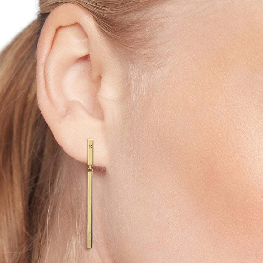 Tommy Hilfiger Ladies Linear Bar Drop Earrings Stainless Steel Gold Plated