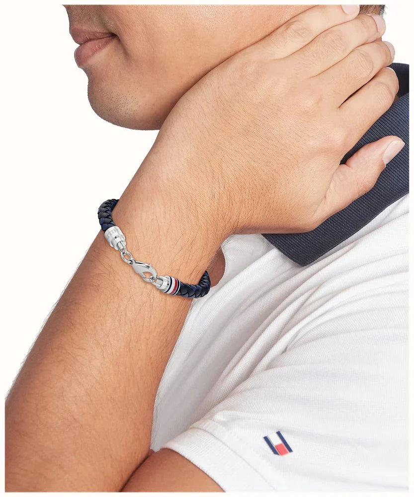 Tommy Hilfiger Tyson Bracelet Black Blue Braided Leather by Tommy Hilfiger elevates your style with a sleek, versatile edge perfect for smart-casual wear.