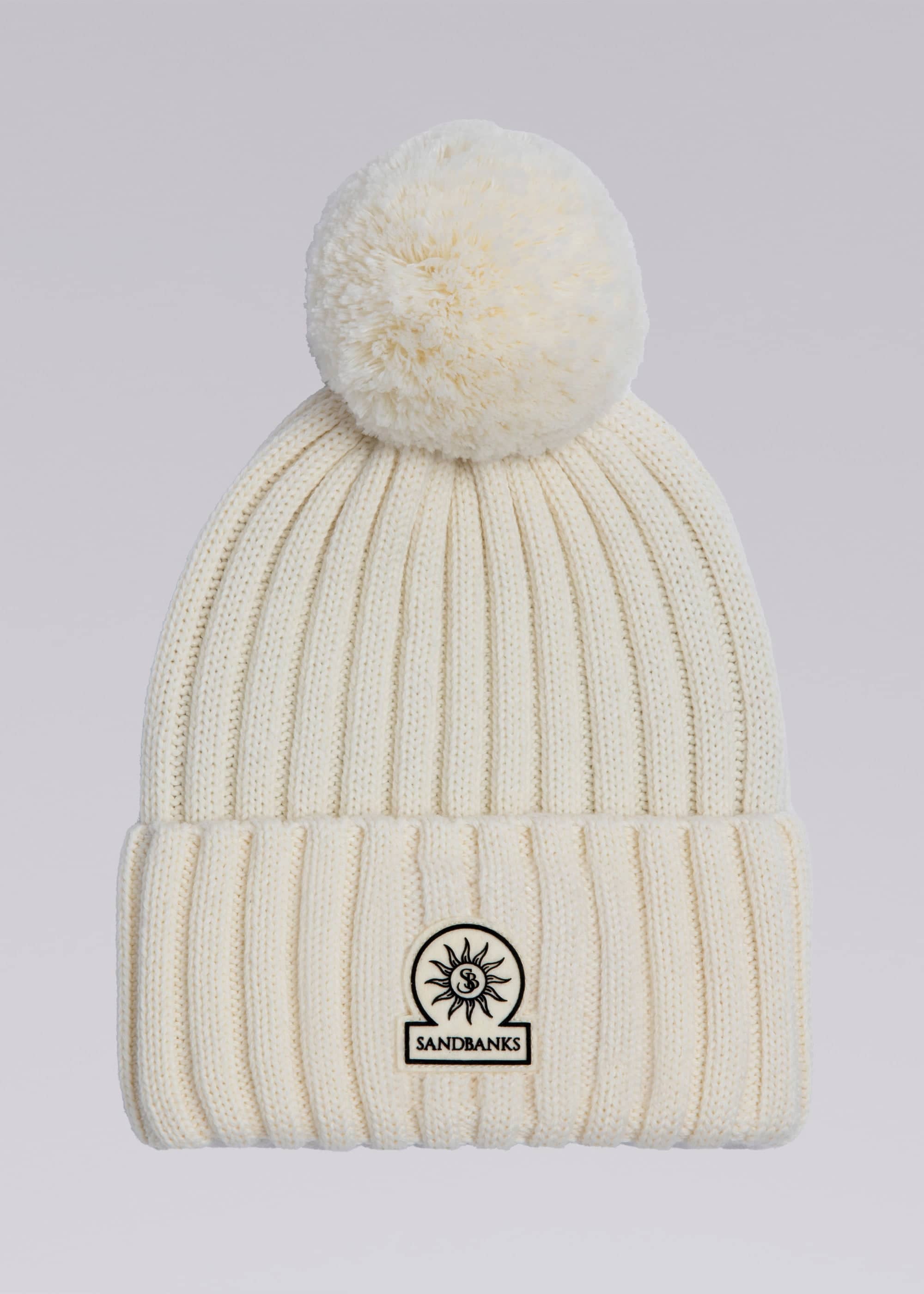 Women's Sandbanks Ecru Pom Pom Beanie Hat