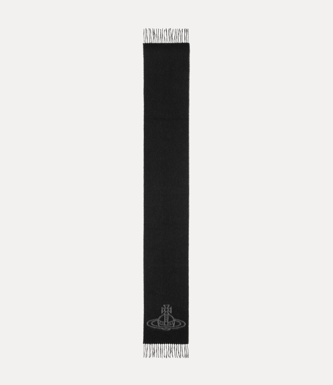 Elevate your accessory collection with this iconic Vivienne Westwood scarf, crafted from 100% wool in Italy. Measuring 185cm in length, this rectangular design features the brand's distinctive 'Line Orb' motif—symbolising tradition and future through Saturn's celestial rings. The reversible construction offers versatility, whilst delicate tassel trims add refined detail. Its lightweight, woven finish and unisex appeal make it a timeless piece suitable for any wardrobe. Perfect for layering or making a statement.