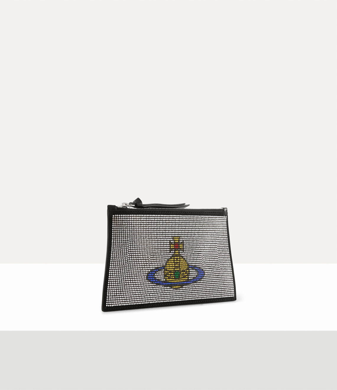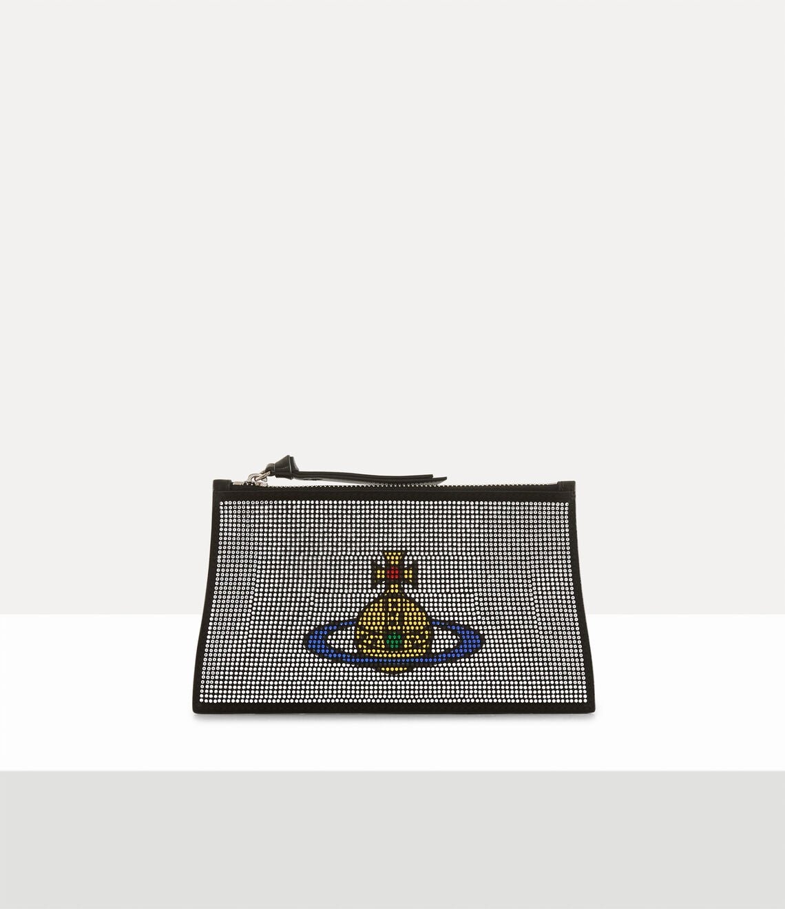 The Vivienne Westwood Flat Small Zip Clutch captures the glamour of grand hotel interiors, taking inspiration from the opulence of the Ritz Paris and The Plaza New York. Crafted in Italy from smooth calf leather with sleek black trims, this compact clutch is adorned with dazzling diamanté embellishments for a striking evening-ready finish.