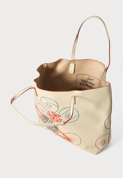 Vivienne Westwood Studio Shopper Handbag Ecru Orb Print