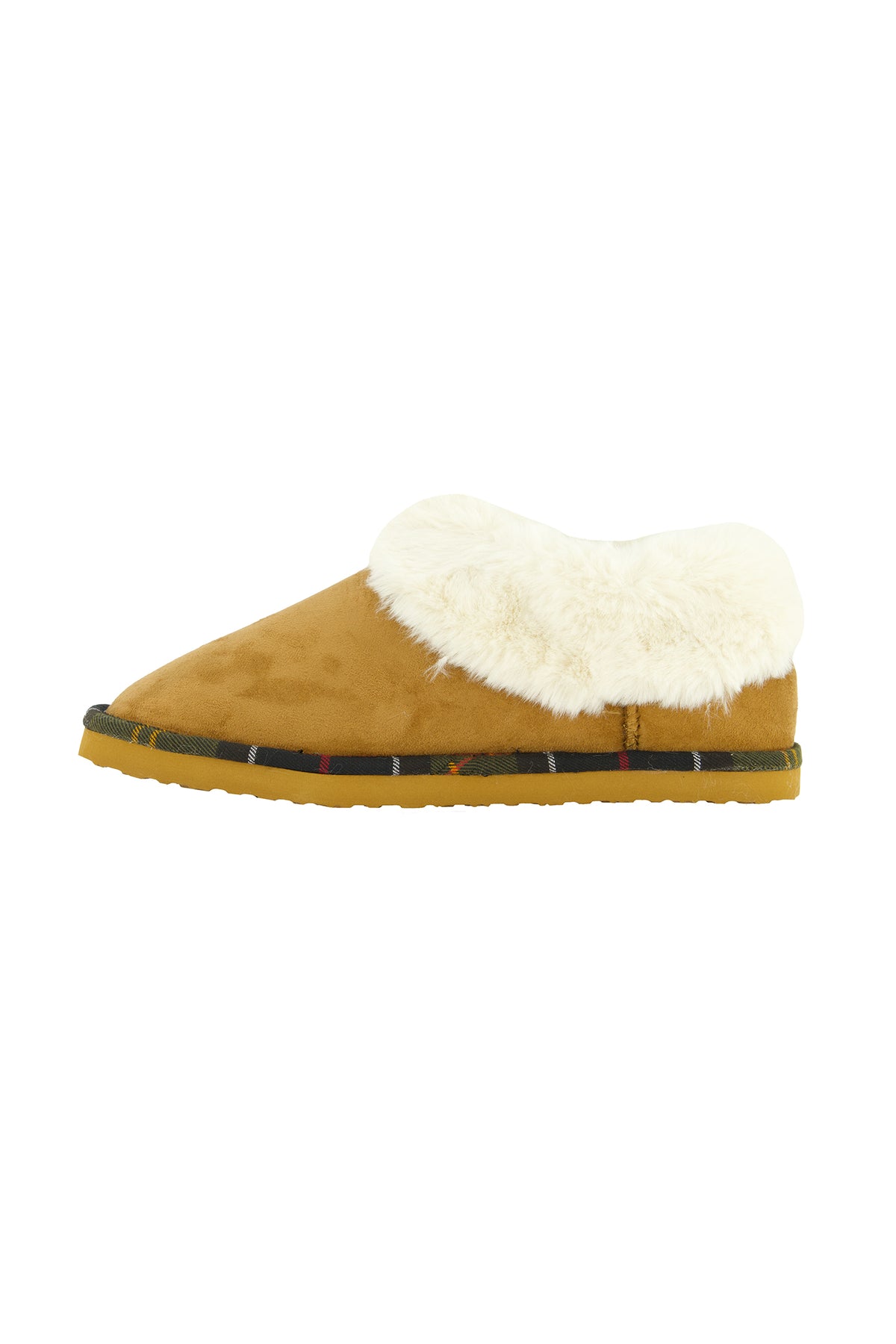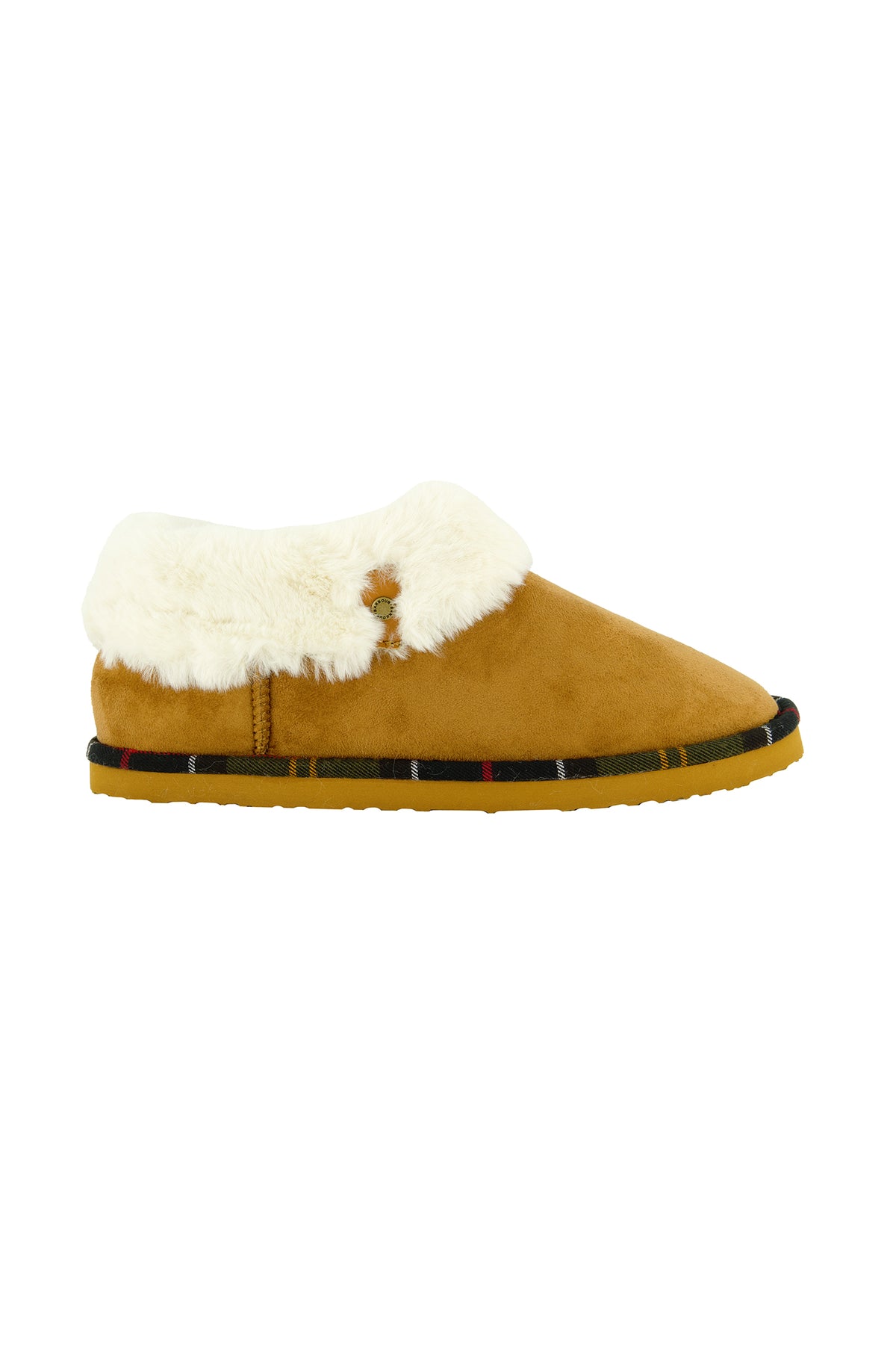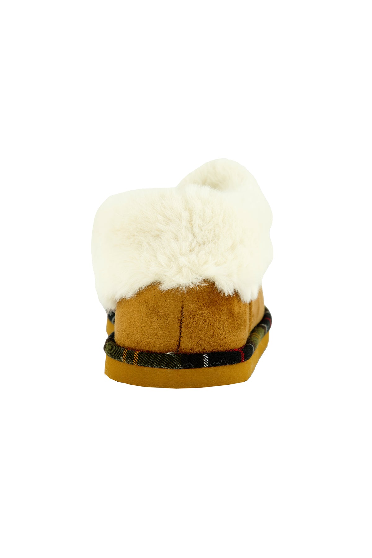 Slip into comfort like never before with the Barbour Eloise Camel Slipper Boots. Crafted from soft faux-suede and lined with plush faux-fur, these slipper boots bring warmth, style, and effortless luxury to your at-home routine.