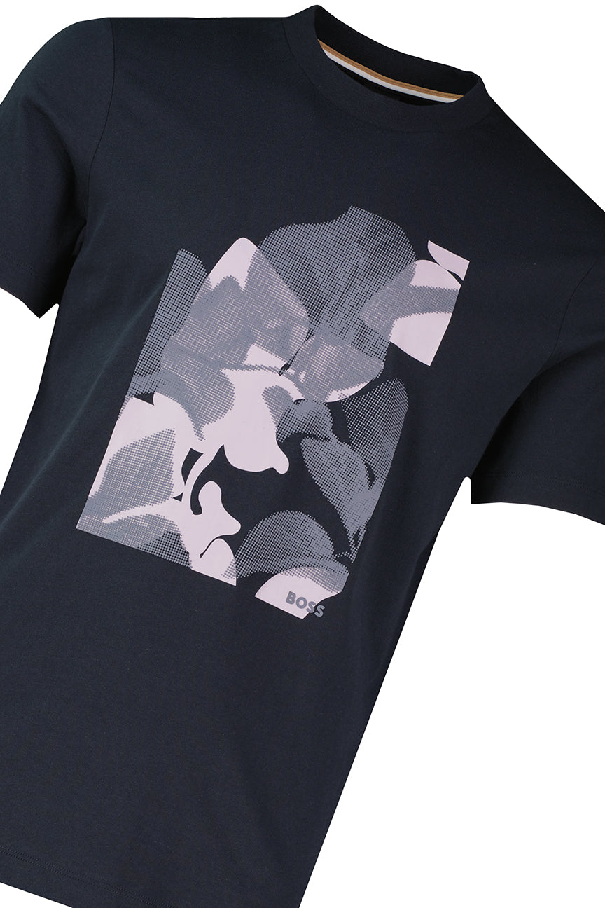 BOSS Cotton Jersey Logo T Shirt 50559754-DBLU in dark blue, constructed from 100% heavyweight cotton jersey with rubber-print detail.