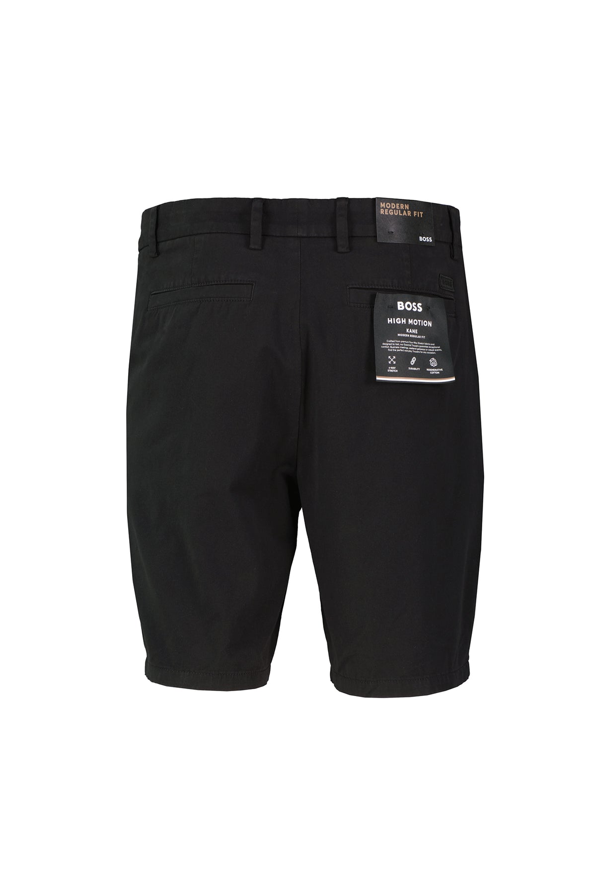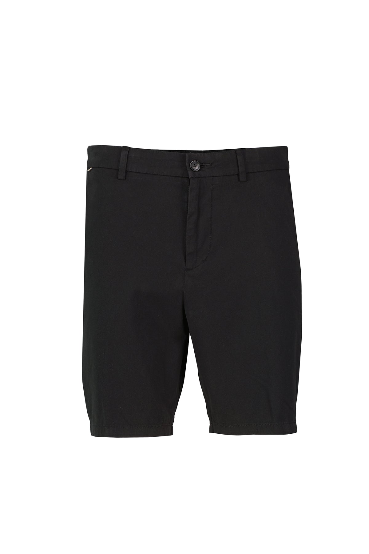 BOSS Stretch Cotton Twill Shorts 50555235-BLK in black, constructed from 93% stretch-cotton twill with 7% elastane for stretch comfort.