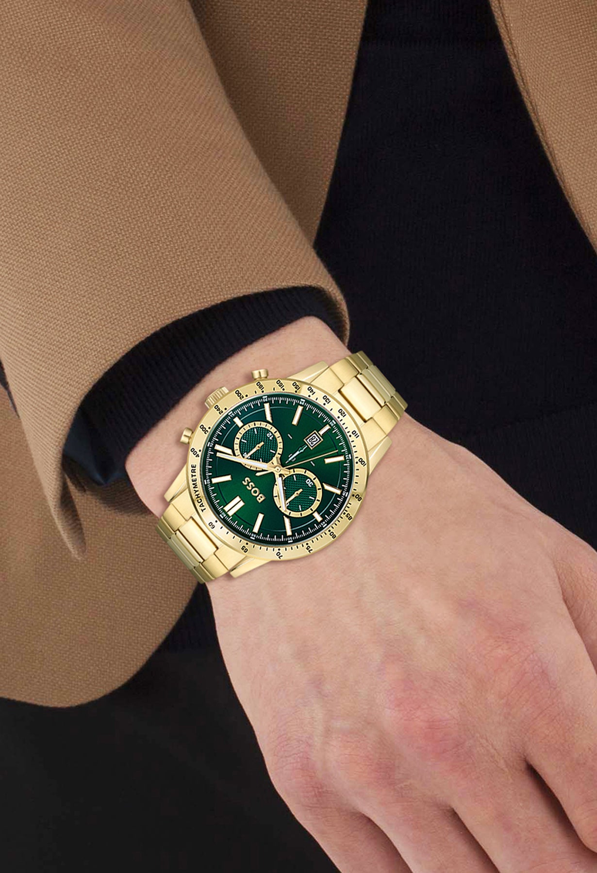 BOSS Mens Allure Green Chronograph Dial Bracelet Watch by BOSS elevates your style with precise timing for the modern man who values luxurious details.