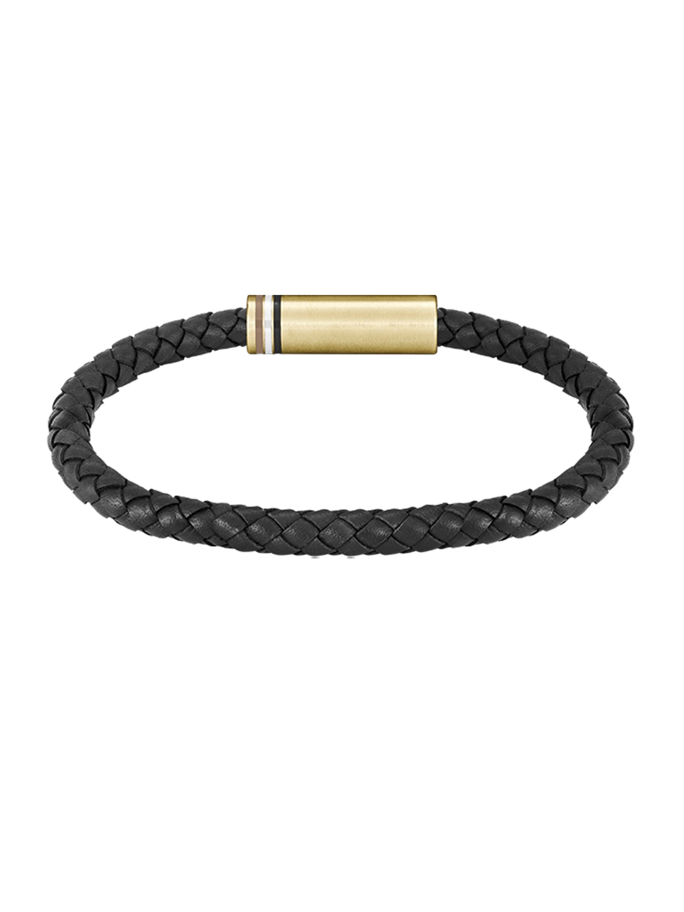 - Black braided leather band with gold-plated accents for a refined, masculine look