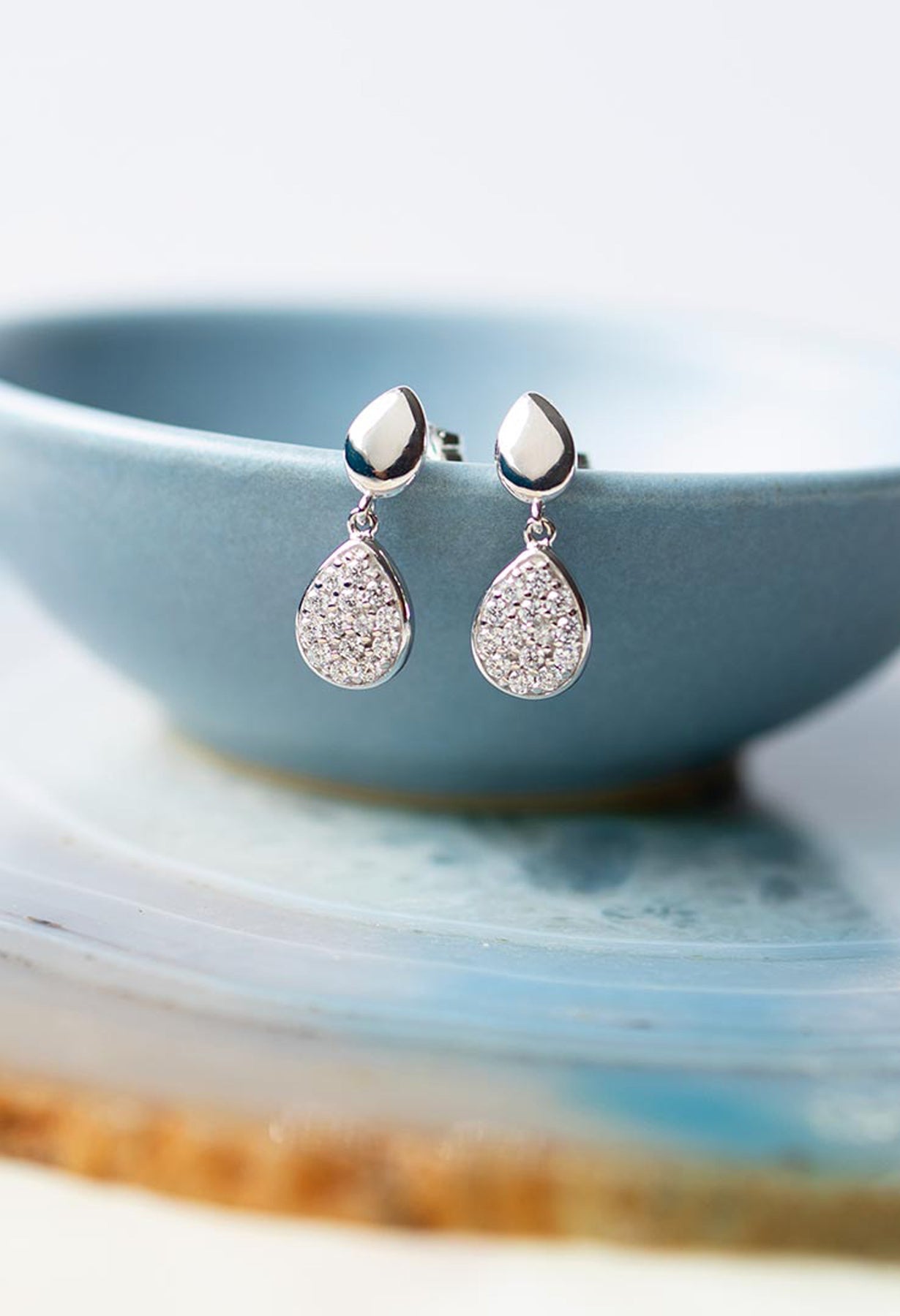 Kit Heath Coast Pebble Glisten Pave CZ Drop Earrings in Silver