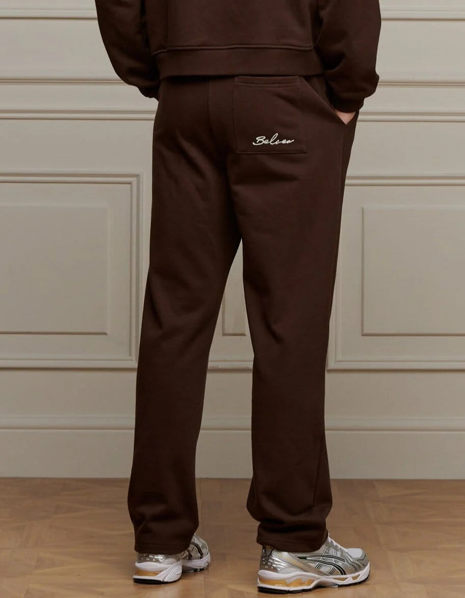 The Men’s Belier Brown Logo Jogger combines comfort and contemporary style with a wide-leg, open-cuff design that delivers a premium look and feel. Crafted from soft, heavyweight fabric, it features a ribbed elasticated waistband, internal drawcord, and bold embroidered logo on the left leg. Perfect for off-duty wear, pair it with the matching Belier Brown Zip-Up Hoodie for a complete tracksuit look that defines effortless street style.