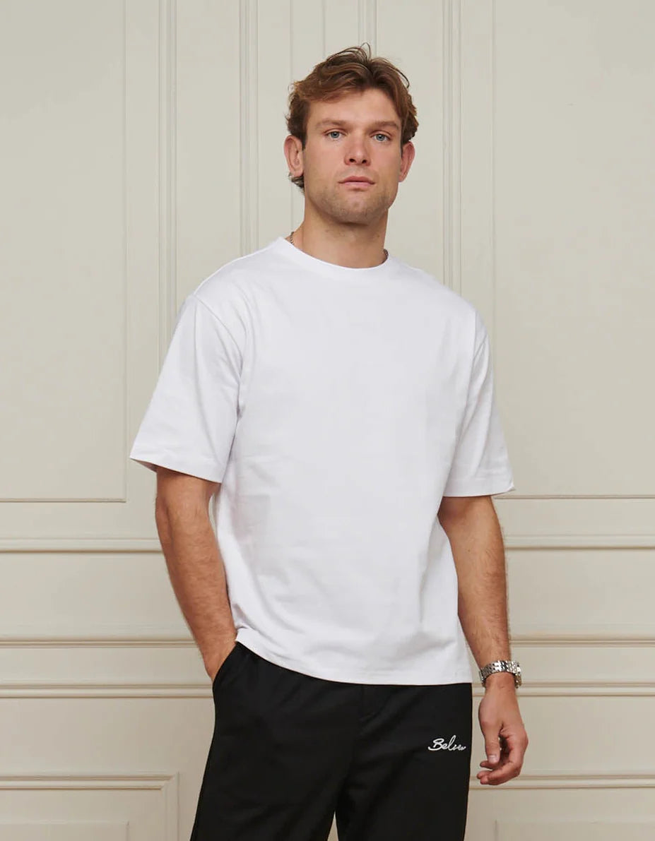 The Men’s Belier White Embroidered Logo T-Shirt is a versatile wardrobe essential, crafted from 290GSM premium cotton for year-round comfort. Featuring subtle black embroidery on the left rib, it adds a refined detail that elevates this classic tee. Perfectly styled with the Belier Brown Embroidered Tracksuit, it delivers a cohesive, premium look ideal for casual days or streetwear-inspired outfits.