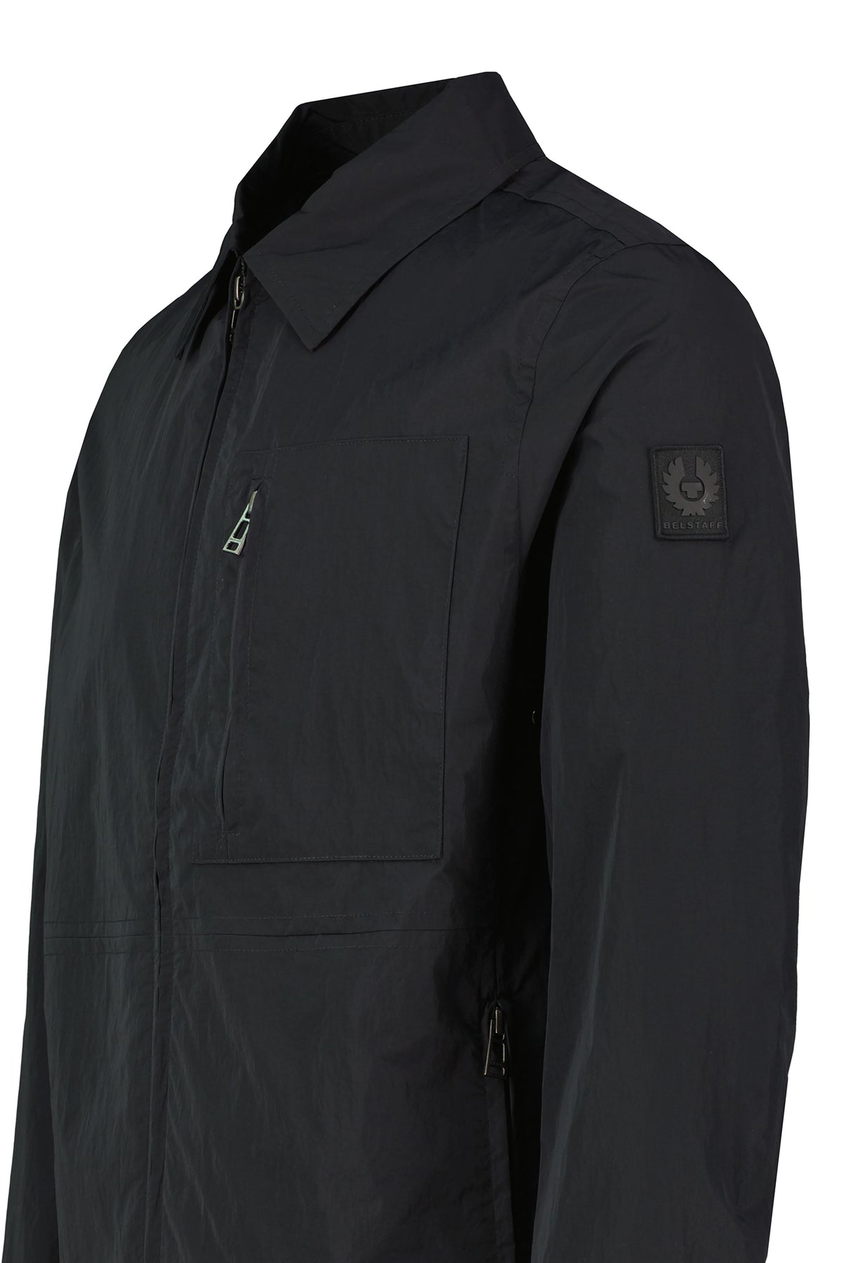 Men's Belstaff overshirt constructed from recycled polyamide shell with recycled polyester mesh lining. Lightweight, unlined construction with zip closure.