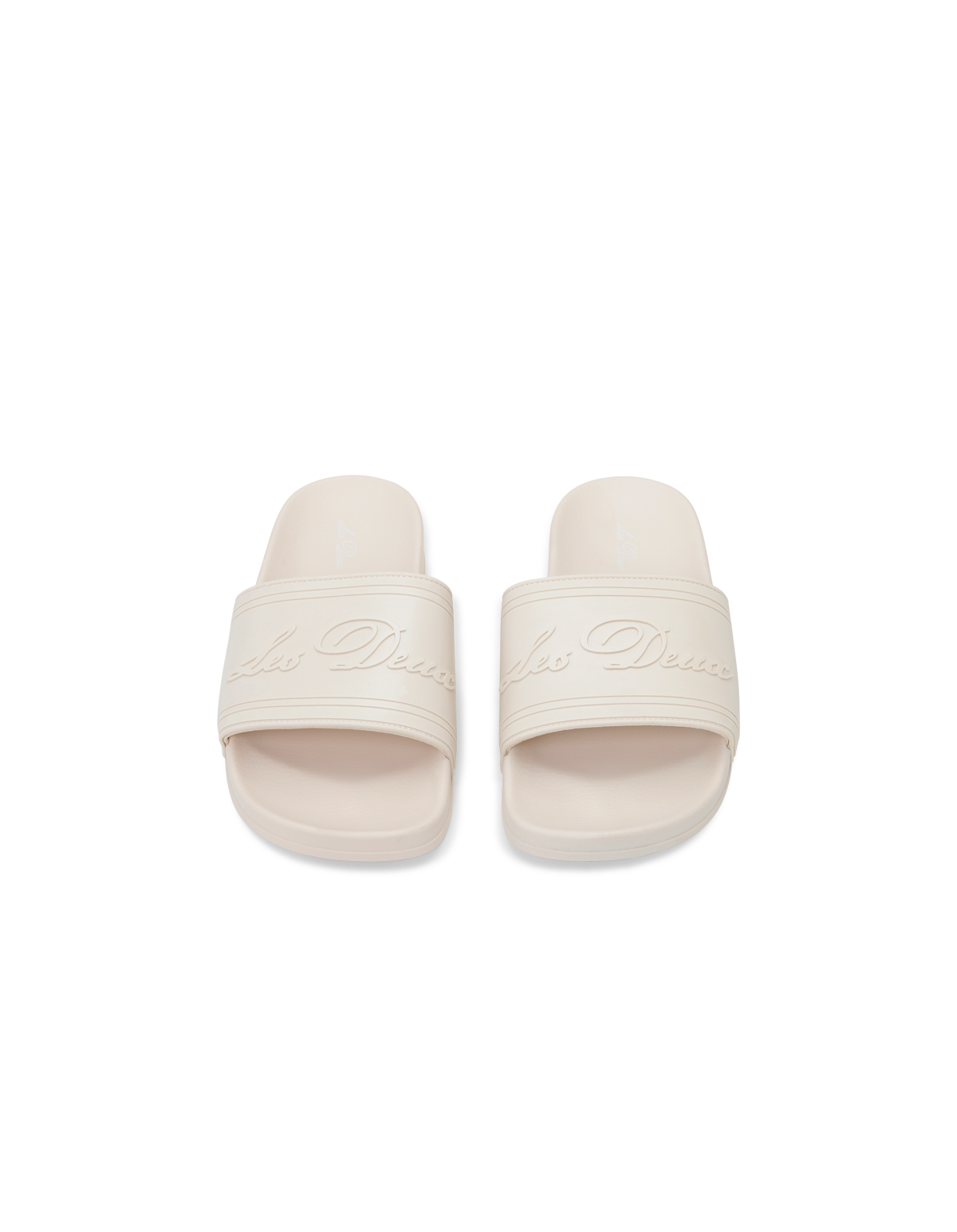 Les Deux Wilton Pool Slide in ivory. 100% polyurethane pool slide with embossed brand detailing.