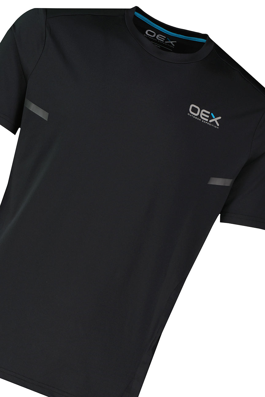 OEX Blue A1B00052-BLK Flash 2.0 T-Shirt in lightweight 90% polyester, 10% elastane construction with laser-cut vents and seamless collar.