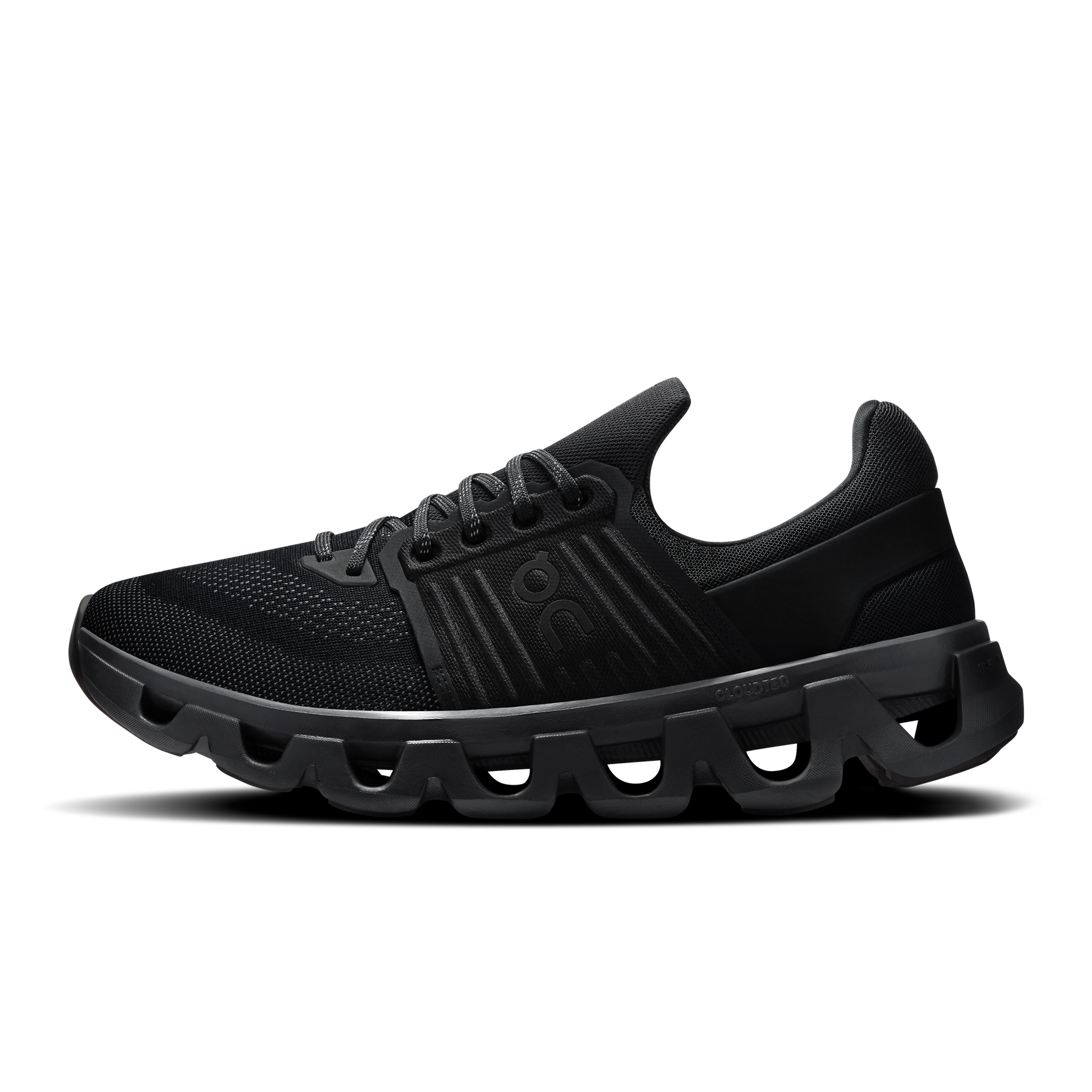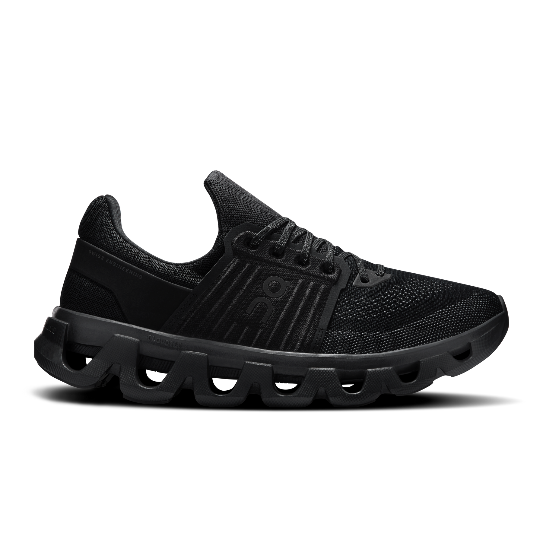 The Men's On Running Cloudswift 4 AD in Black is an all-day sneaker with a water-repellent upper. Dual-density Helion™ superfoam midsole delivers soft landings, while the nylon-blend Speedboard® provides a responsive ride. Sock-like bootie construction for a soft step-in.