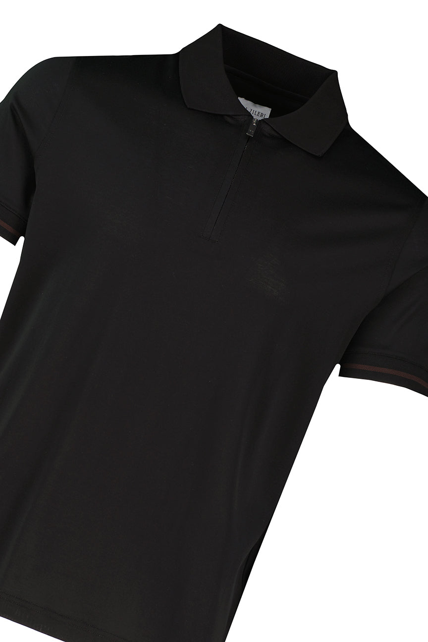 Men's Pal Zileri Black Mercerised 1/4 Zip Polo Shirt