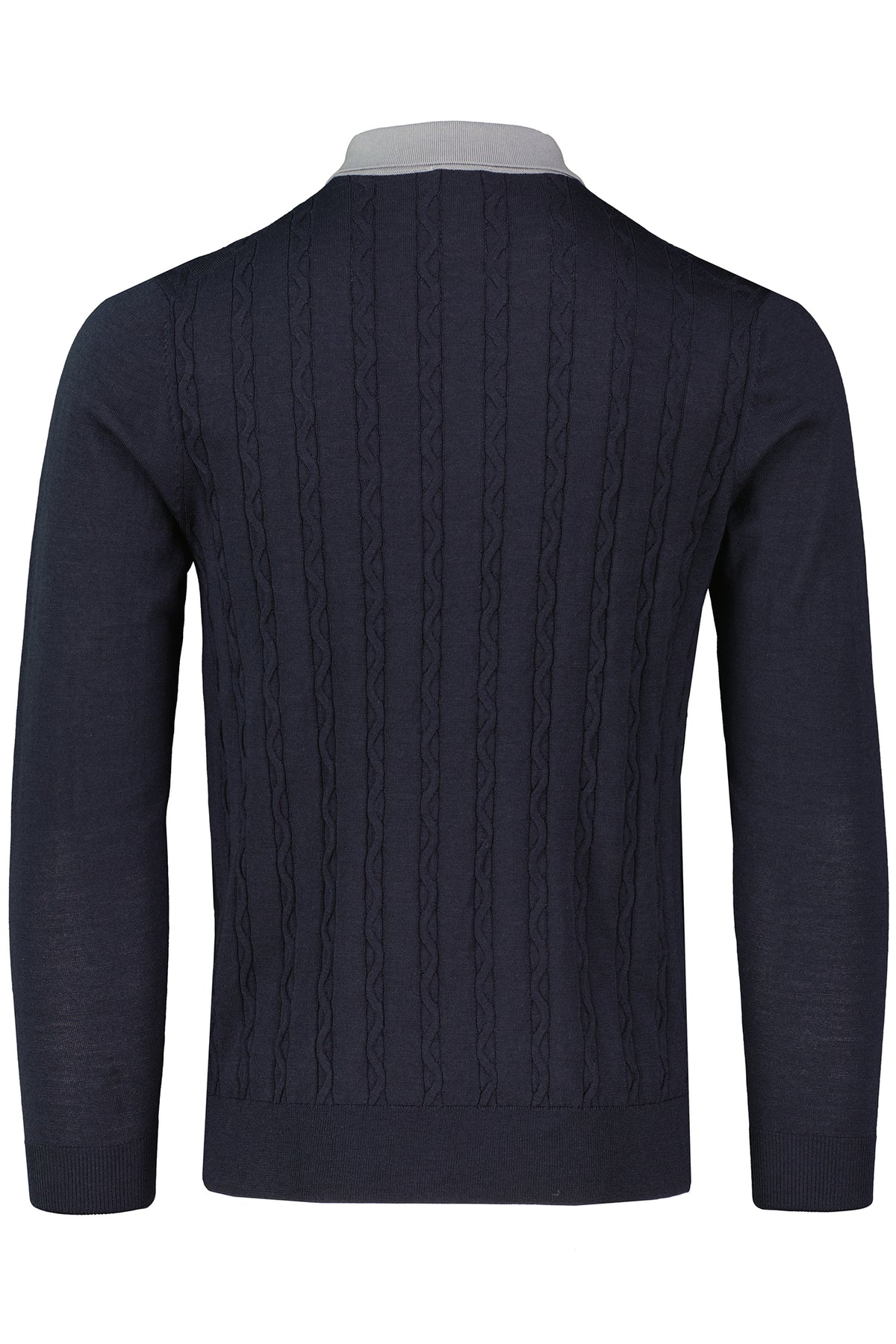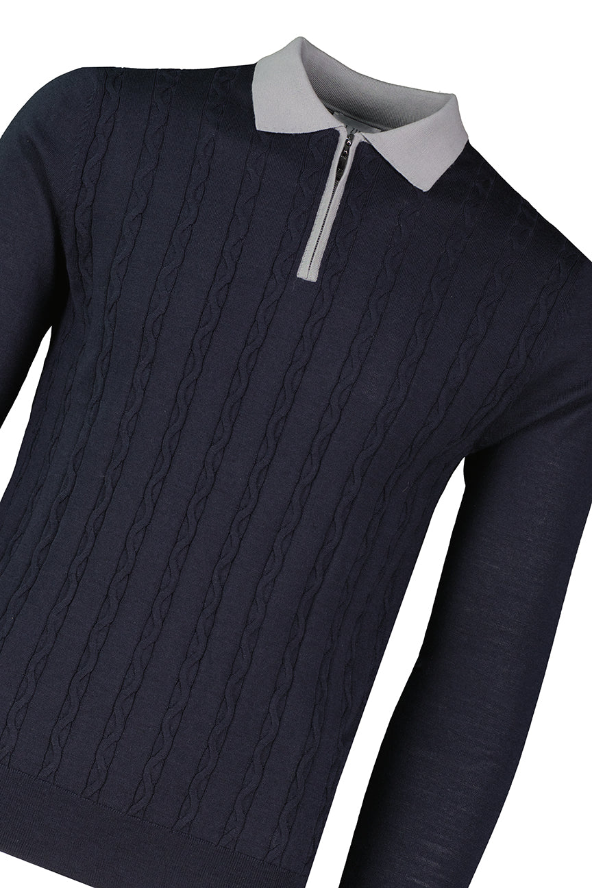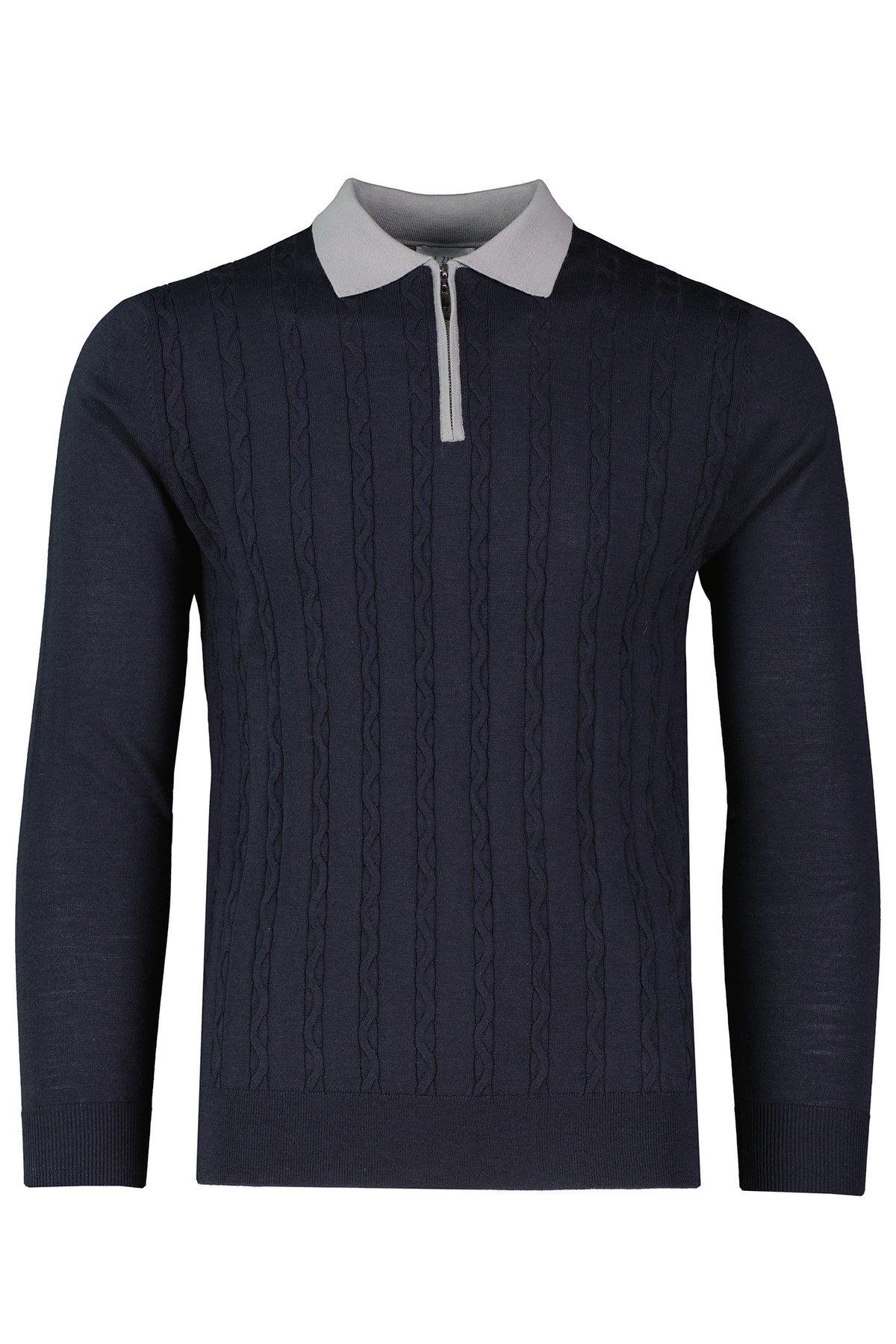 Men's Pal Zileri Navy 1/4 Zip Long Sleeve Knitted Polo Shirt