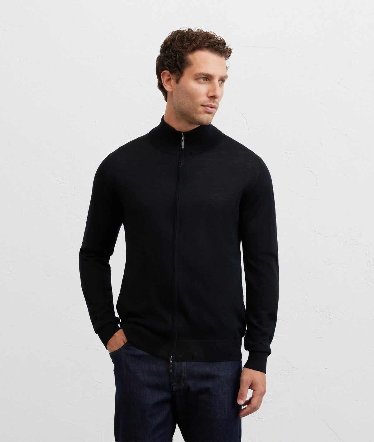Men's Pal Zileri Navy Zip Up Wool Cardigan