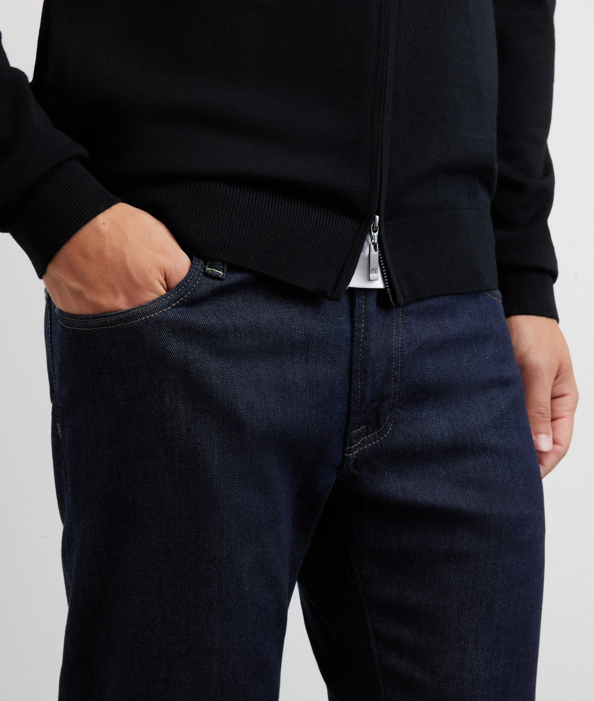 The Men's Pal Zileri Navy Zip Up Wool Cardigan from the Effortless Capsule combines comfort with refined style. Crafted from 100% premium wool in a 16-gauge jersey knit, it offers natural warmth, breathability, and a uniform texture built to last. The regular fit adapts to the male silhouette, while the zip closure and stand-up collar provide a modern, versatile finish. Perfect for transitional seasons, this cardigan delivers effortless sophistication for layering and everyday wear.