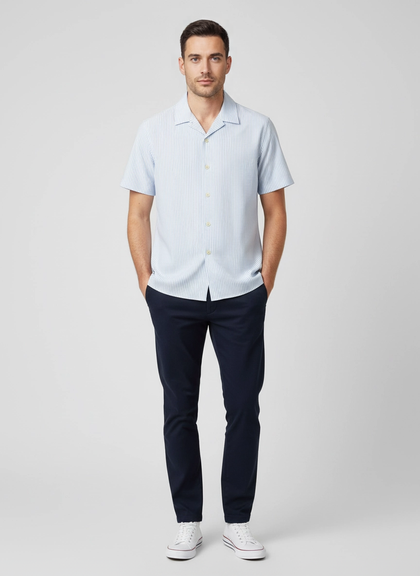 Expertly crafted with a casual fit, this Men's Paul Smith Blue Stripe Short Sleeve Shirt is perfect for any occasion. Made from high-quality materials, it boasts a timeless blue stripe design that exudes effortless style. Upgrade your wardrobe with this must-have shirt.