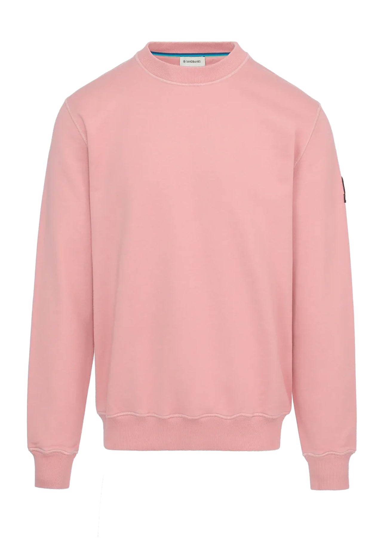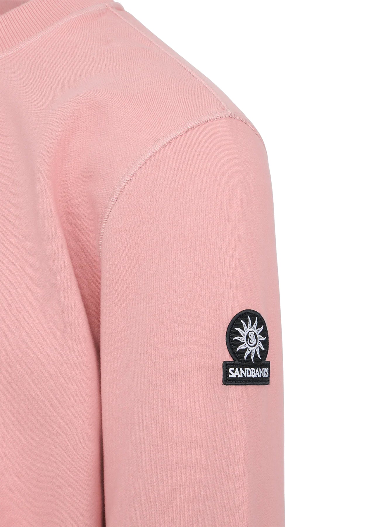 The Men's Sandbanks Badge Logo Crew Sweatshirt in dusty pink diagonal weave cotton-elastane.