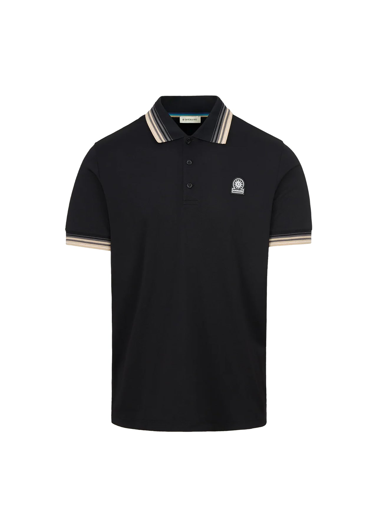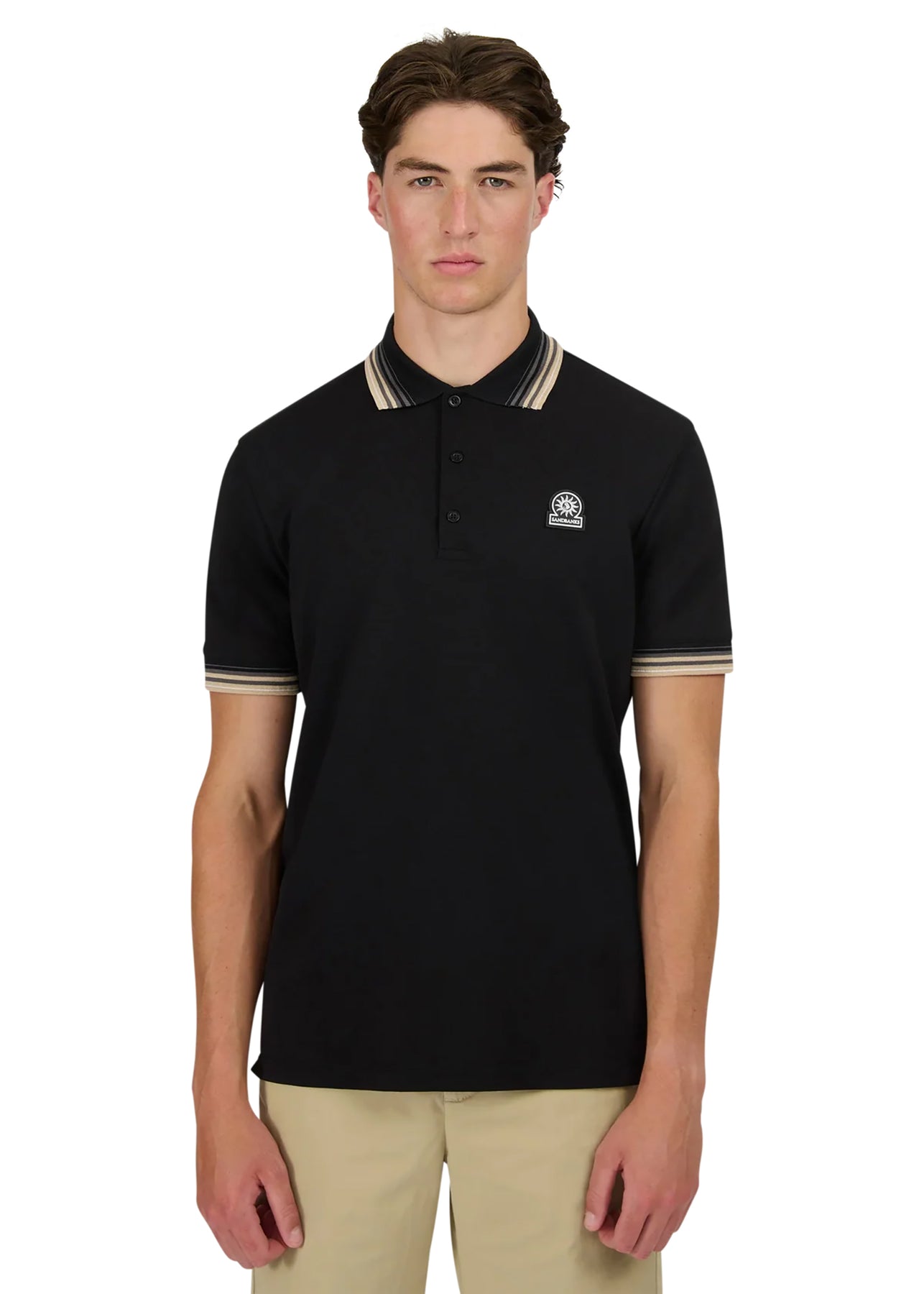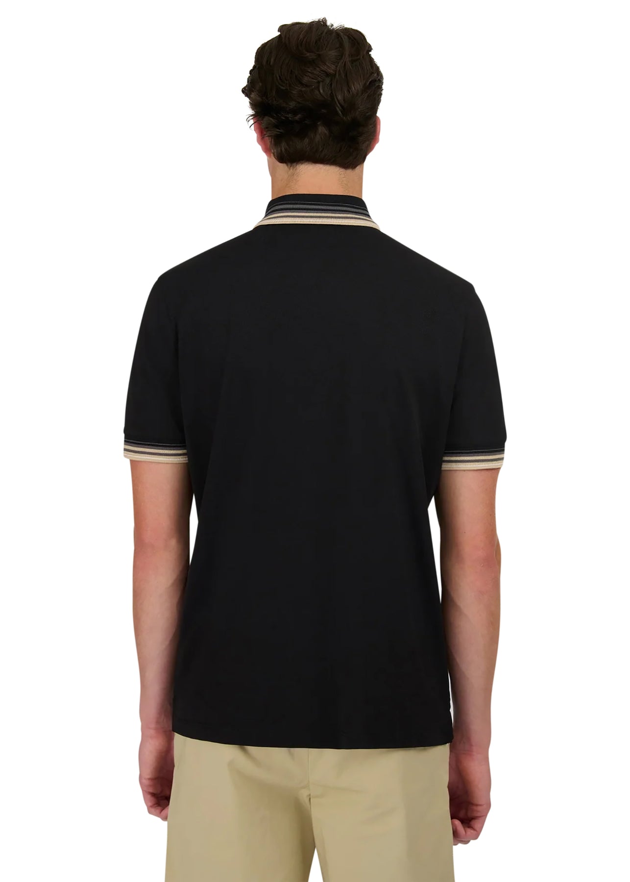 Sandbanks Black Gradient Rib Polo Shirt MBP58-BLACK in black, constructed from 100% PA micro pique.
