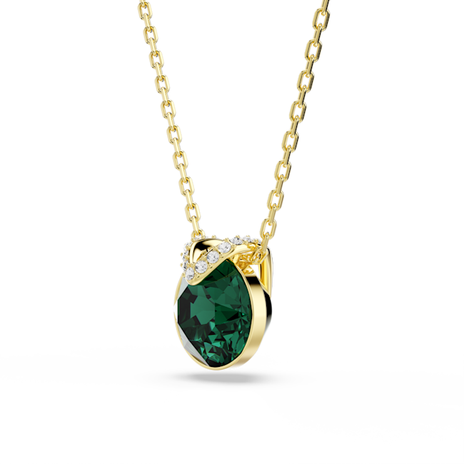 Swarovski Bella V Pendant Green Round Cut Gold Tone Plated by Swarovski, a stunning piece that delivers a vibrant green sparkle for sophisticated evenings and elevated everyday style.