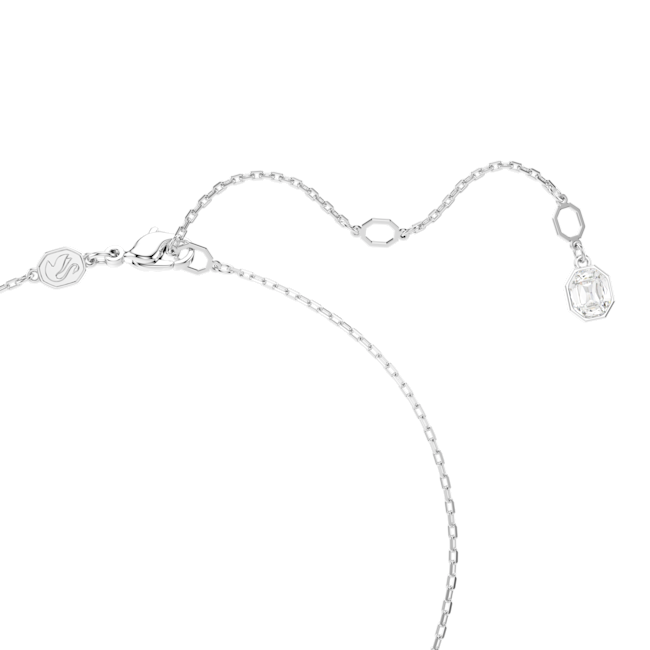 Indulge in precision craftsmanship with a rhodium-plated setting that shines brilliantly and a sparkling round crystal designed to add a touch of sophistication to any neckline.