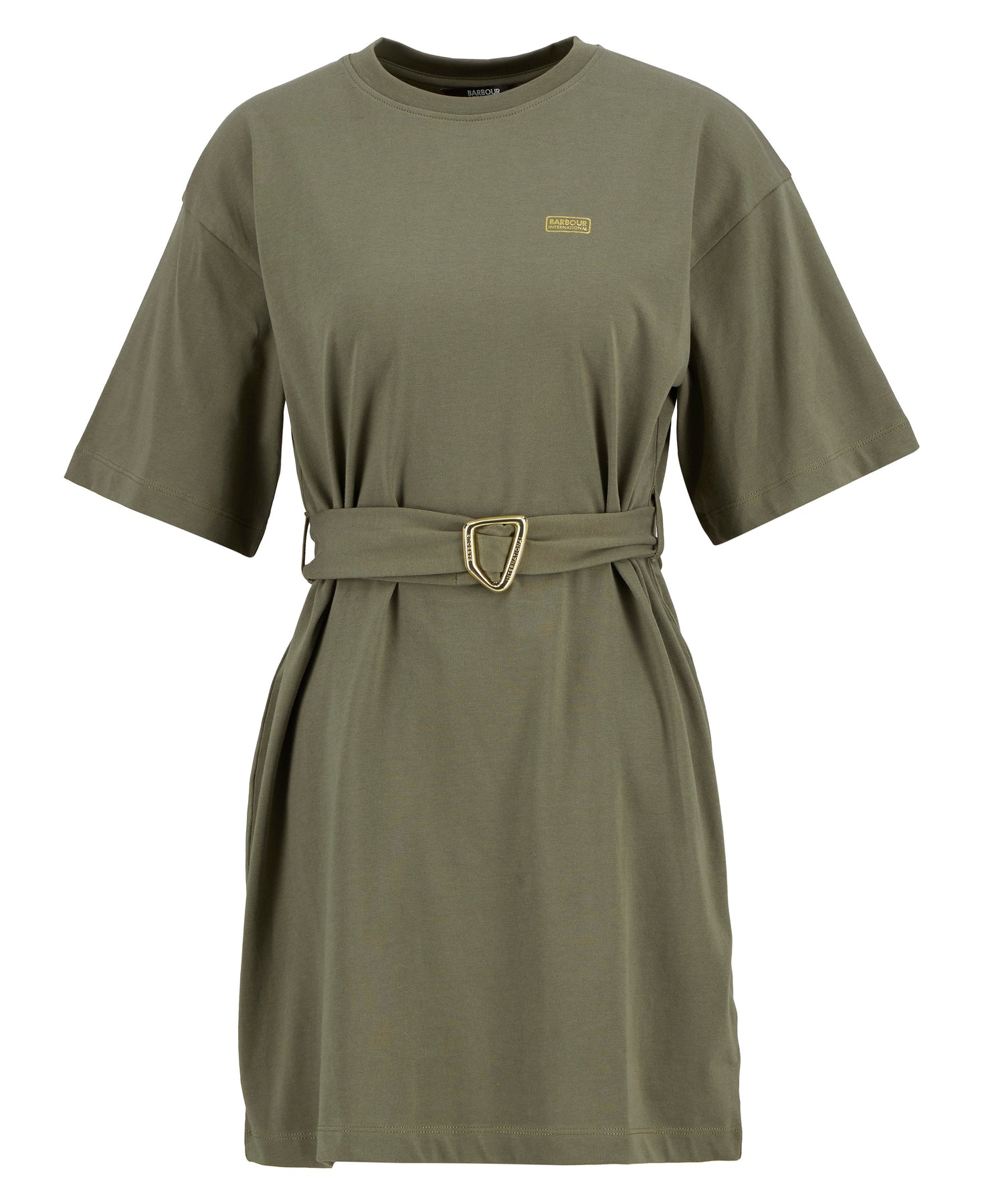 Women's Barbour International mini dress constructed from 100% cotton. Branded buckle fastening at waist with removable belt and silicone ID badge at centre back neck.