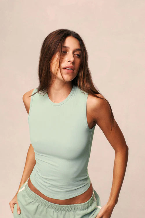 The Foundation Muscle Tank in Dusty Mint by P.E Nation is the ultimate off-duty essential. Crafted from our luxuriously soft Body Luxe fabrication, this slim-fit muscle tee feels like butter against the skin while offering the perfect balance of stretch and support.