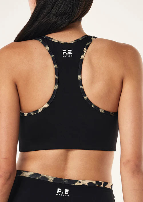 Women's P.E Nation Stellar Sports Bra in Black Leopard Print
