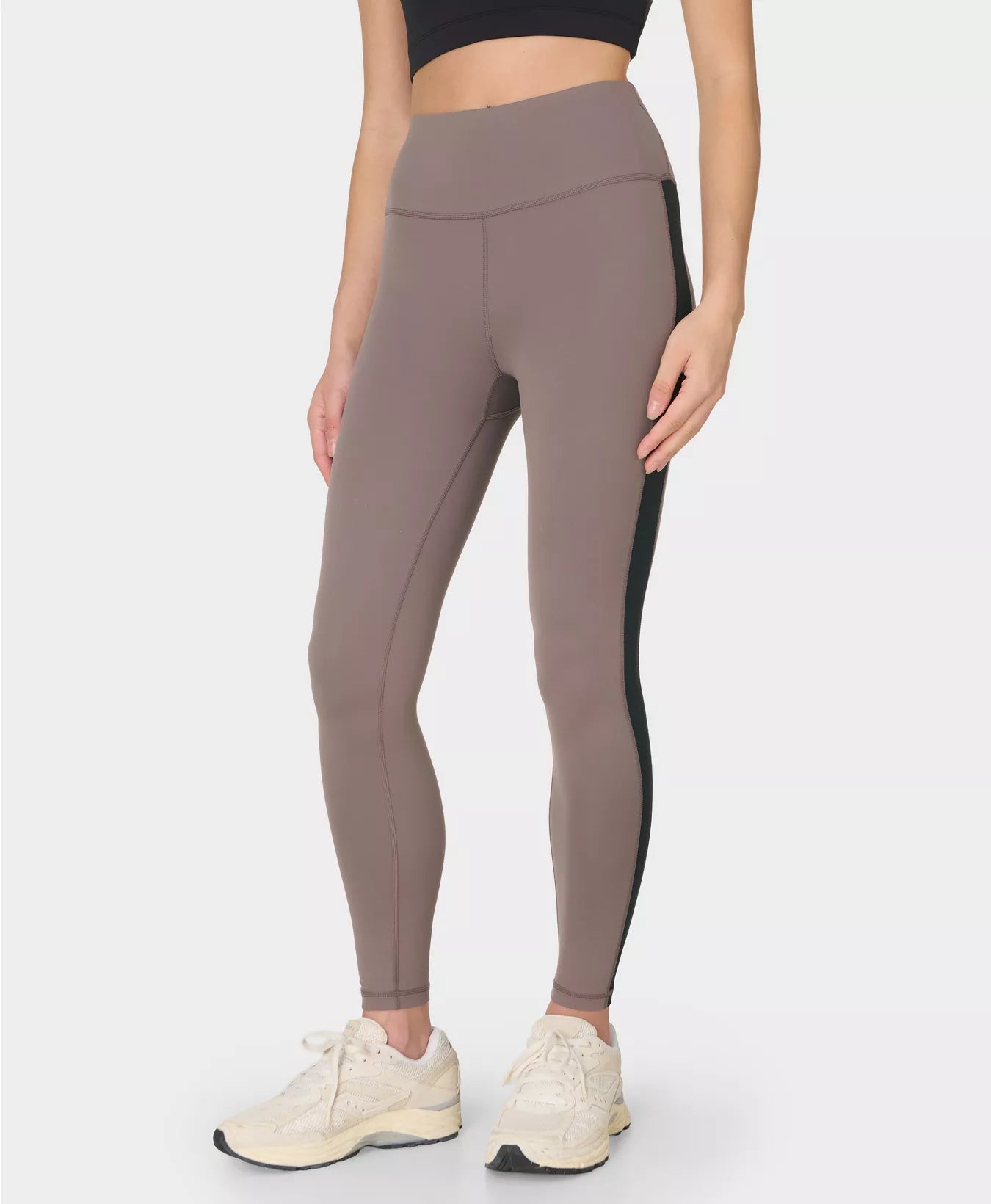 Women's Sweaty Betty 7/8 Side Stripe Legging in Taupe Brown Black