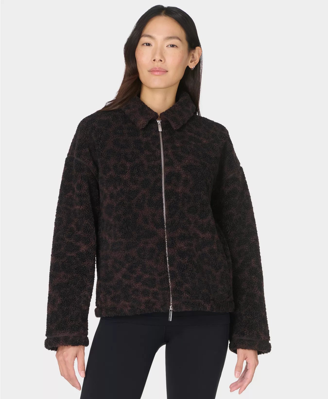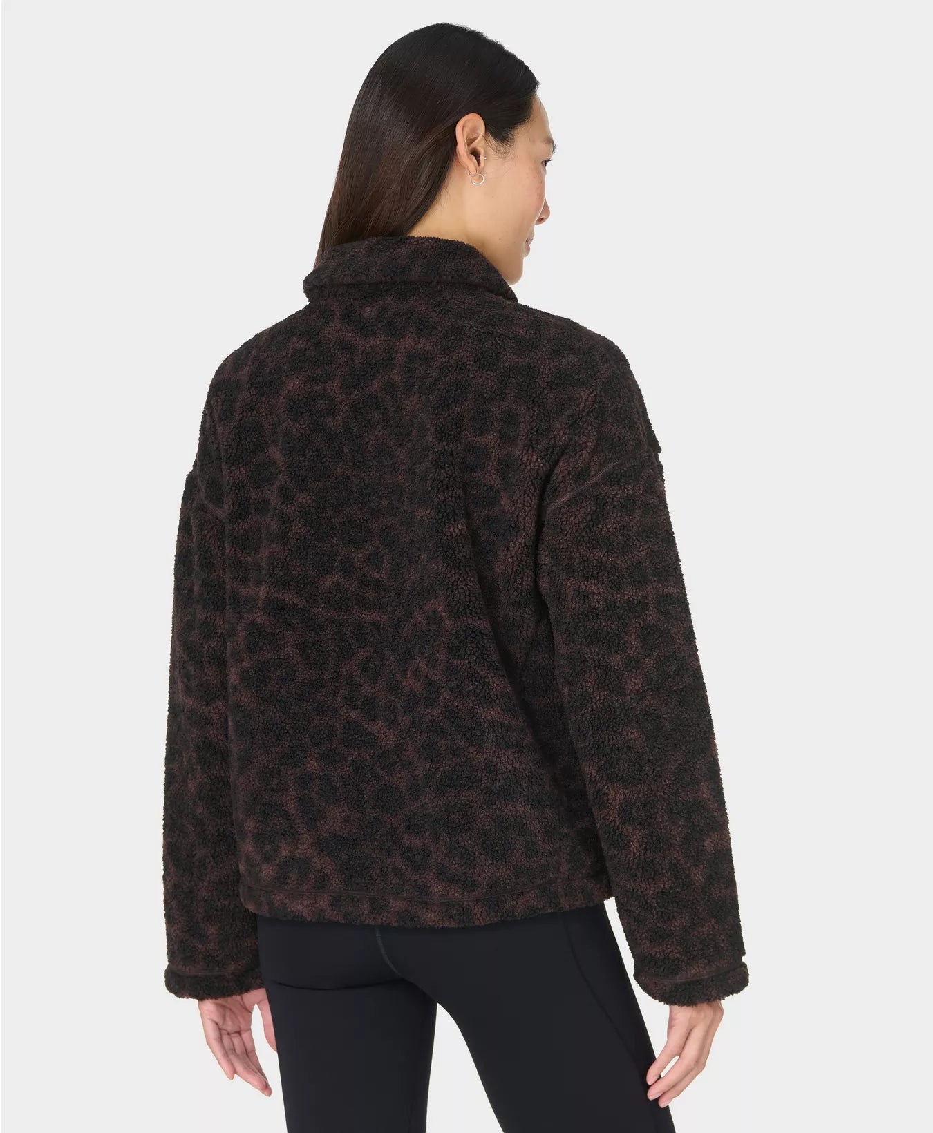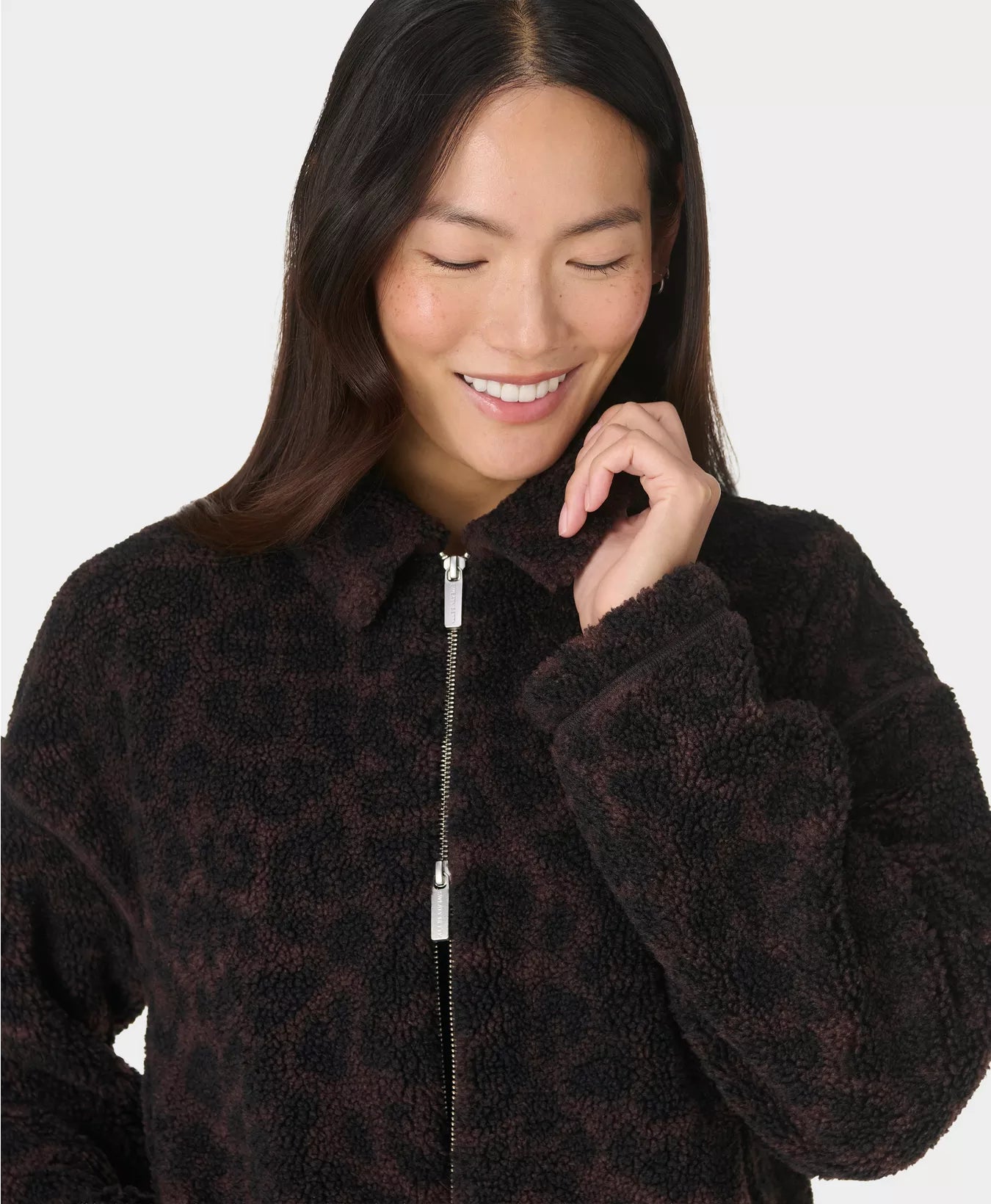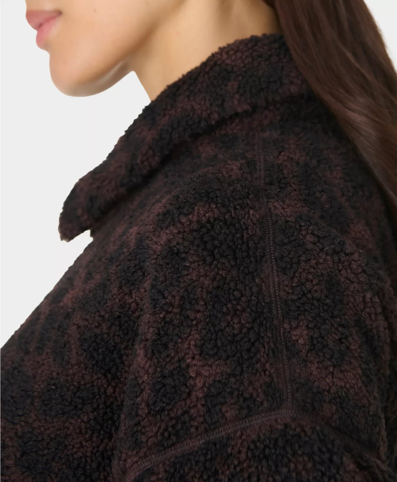 Women's Sweaty Betty Plush Collared Fleece - Large Brown Leopard Print